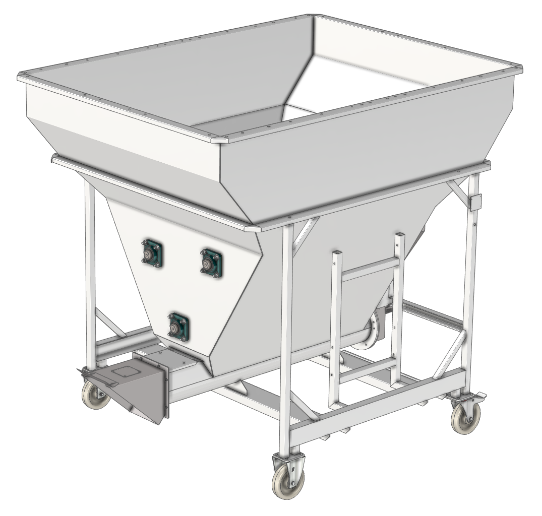 Násypka může být z horní strany částečně nebo zcela zakrytá. K dispozici je víko plné, částečně nebo zcela otevíratelné z vodovzdorné překližky nebo síťované. Usazení násypky může být na pojezdových kolech s vysokou nosností nebo na pevných podpěrách. Standardně vyráběné modely násypek jsou uvedeny v tabulce na zadní straně. Jsme schopni přizůsobit provedení zvláštním požadavkům nebo navrhnout a vyrobit i jiné provedení dle zadaných rozměrových specifikací. Pohony šneku a vnitřních aktuátorů zajišťují asynchronní třífázové motory s kvalitními bezúdržbovými převodovkami s čelním ozubením. Násypka může být dodána bez elektroinstalace nebo s kompletní instalací a rozvaděčem s frekvenčními měniči pro plynulé řízení dopravního výkonu i s připojeným dopravníkem. Integrace do výrobní linky může být modifikovaná dle požadavků